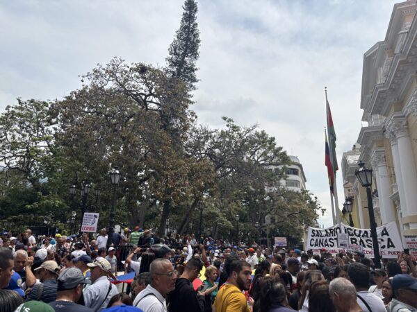 «Hoy llegamos a la Asamblea Nacional y creemos que si estamos viviendo un «nuevo momento político» no puede haber viejas prácticas. Esto de colocar tarimas e improvisar movilizaciones en el último día no le ayuda al país. Lo conveniente es que se le permita llegar a la gente, manifestar pacíficamente como lo estamos haciendo«, dijo Gregorio Afonso, presidente de la Asociación de Profesores de la Universidad Central de Venezuela (APUCV).